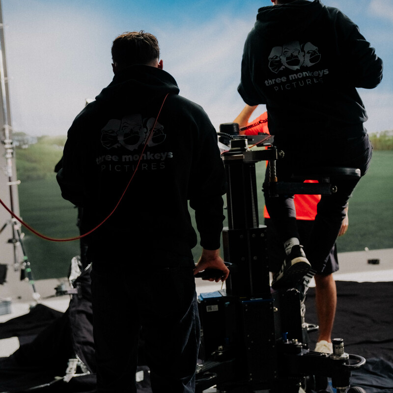 Die Schriftart des Logos ist eine junge dynamische Schrift, die durch das Verwenden von ausschließlichen Minuskeln im Namen "three monkeys" symbolisieren soll, dass wir für die primäre Sache, nämlich den fertigen Content, gerne wortwörtlich im Hintergrund stehen. Das Wesentliche sind also die "PICTURES". Pictures steht natürlich nicht für Fotos, sondern für alle Bewegt- und nicht Bewegtbilder, die von uns produziert werden.